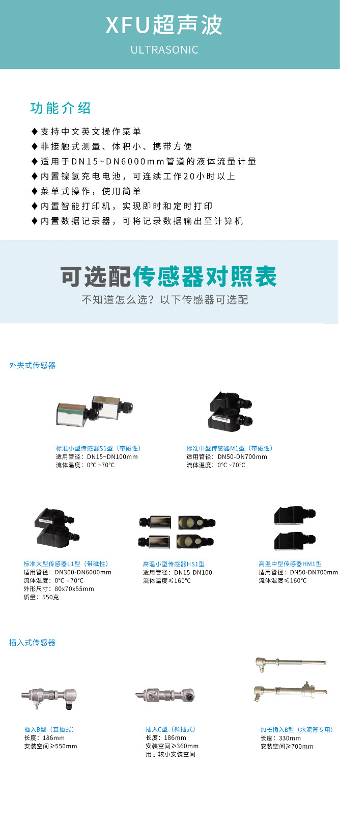 便携式超声波是以“速度差法”为原理,测量圆管内液体流量的仪表.它采用了先进的多脉冲技术、信号数字化处理技术及纠错技术,使流量仪表更能适应工业现场的环境,计量更方便、经济、准确.产品达到先进水平,可广泛应用于石油、化工、冶金、电力、给排水等领域.